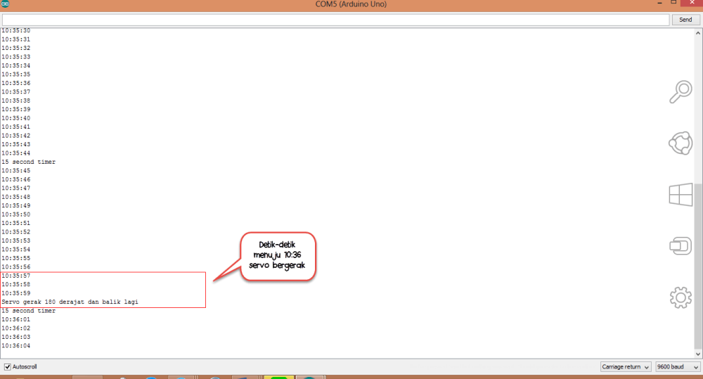 Hasilnya, dapat dilihat di serial monitor berupa waktu komputer kita.